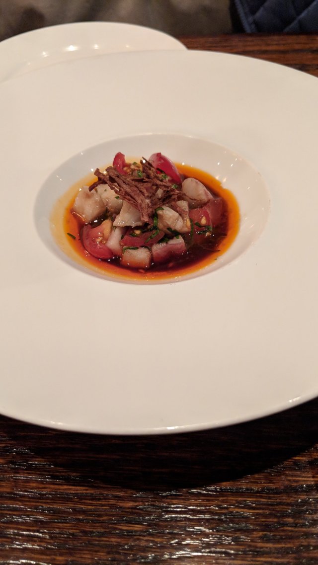 Smoked eel with tomatoes and daikon