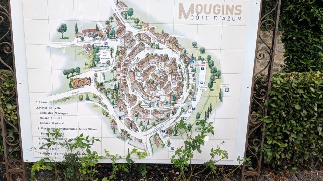 Mougin, too late to eat. High hill town with one lane road we took. Not the best choice. Settled for a croque.