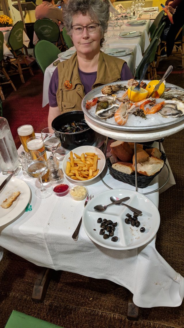 QB looking pleaseed with her moules frites. KB, not pictured, equally pleased with the plateux.