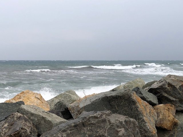 We have entered the alps maritimes. Big waves along the coast. Very windy day. Kite surfers and wind surfing heaven.