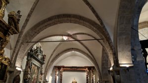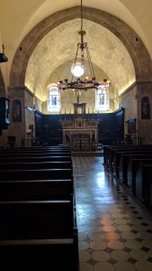 The donjon is 12th century origin, the eglise is from the 13th with some additions. No flying butresses, therefore small windows.