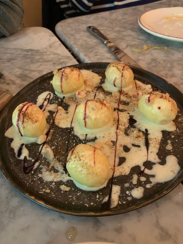 Folks will likely wonder what the lovely white dumpling thingies are. They are gnocchi stuffed with Périgord black truffle cream.