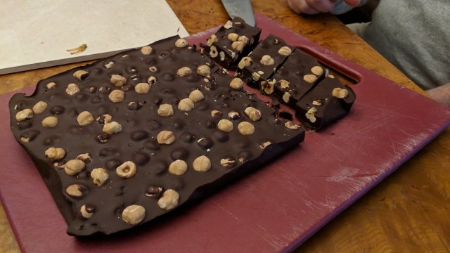 Another meal by our chef, beef noodles followed by dessert,valrona chocolate, hazelnut from Alba, raisins.