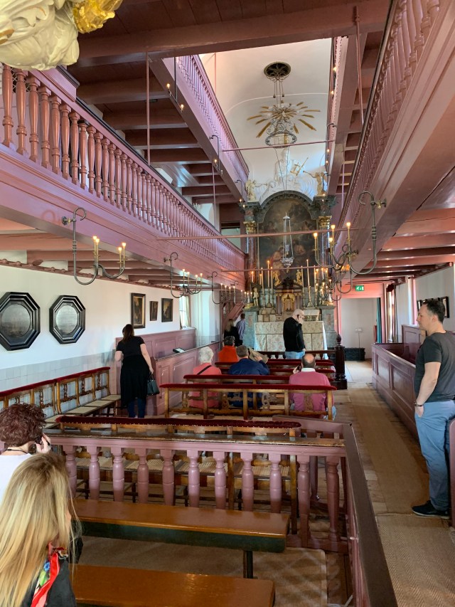 Day started with a visit to Museum Ons’ Lieve Heer op Solder, Our Savior in the attic. A 17th century canal building, in its original state, mostly, with a Church on the 4th floor. Protestants took over in late 16th Century and permitted secret worship of other faiths. This is one of 20 or so Churches in the attic, only one still intact.