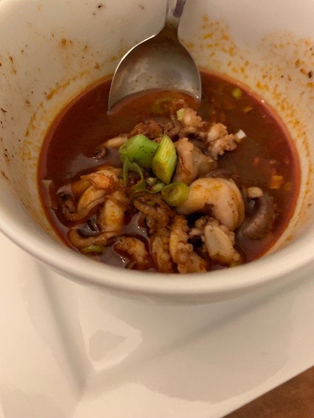 Then baby octopus in fiery red broth made, apparently, just for me.