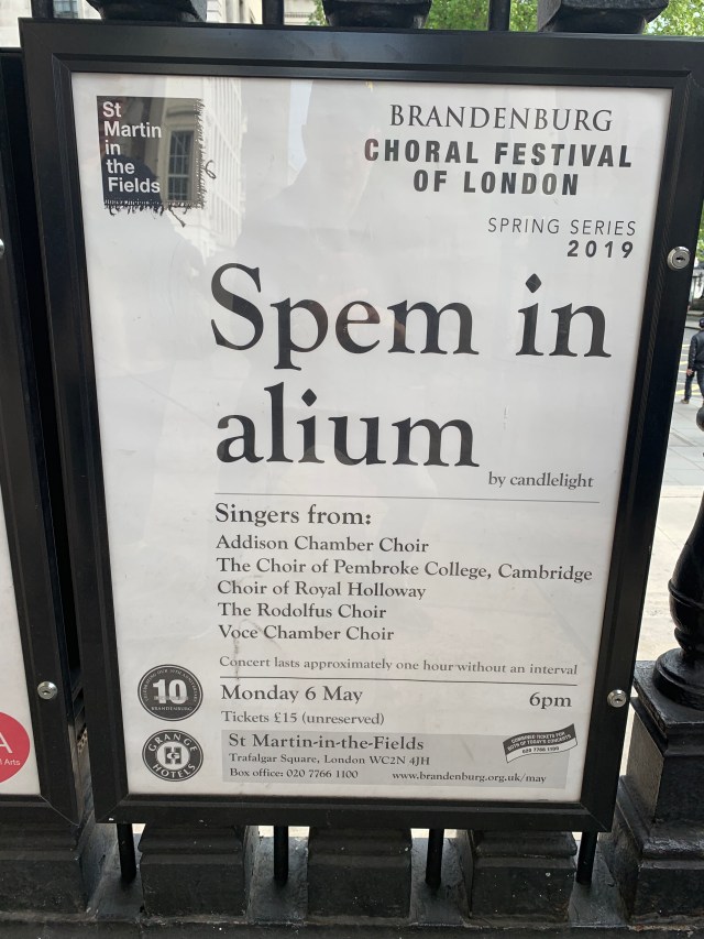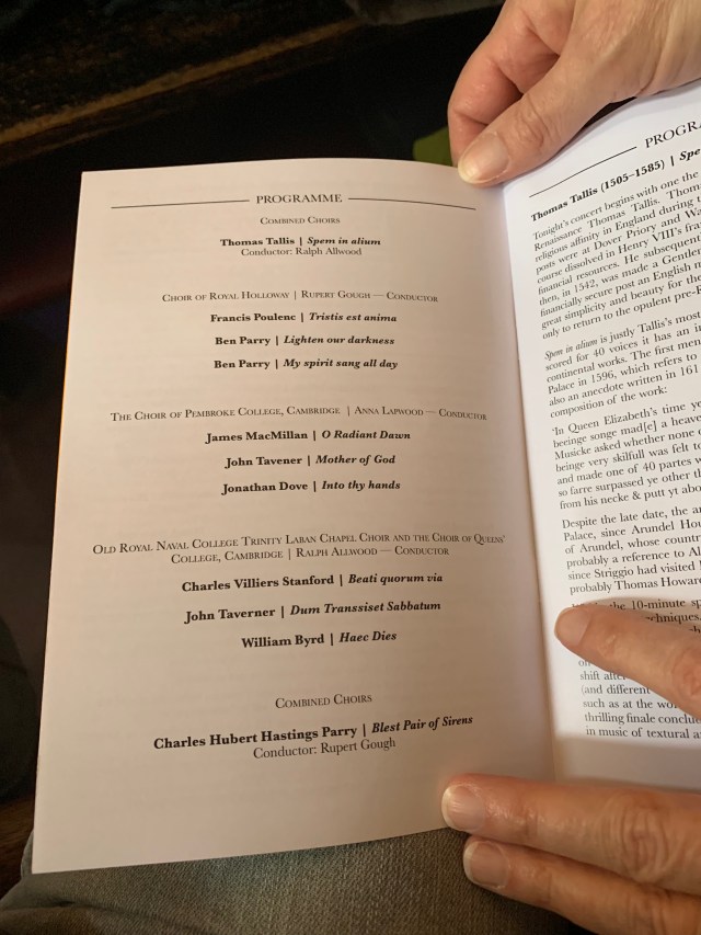 Tea and scones later then off to St. Martins again. This time one of their best. Four choruses selected for their final evening of the season. Lead piece Spem in Alium. Each chorus was the best and the finale was all four choruses signing together. Ran out of programs and in theory I will get one via email following my request.