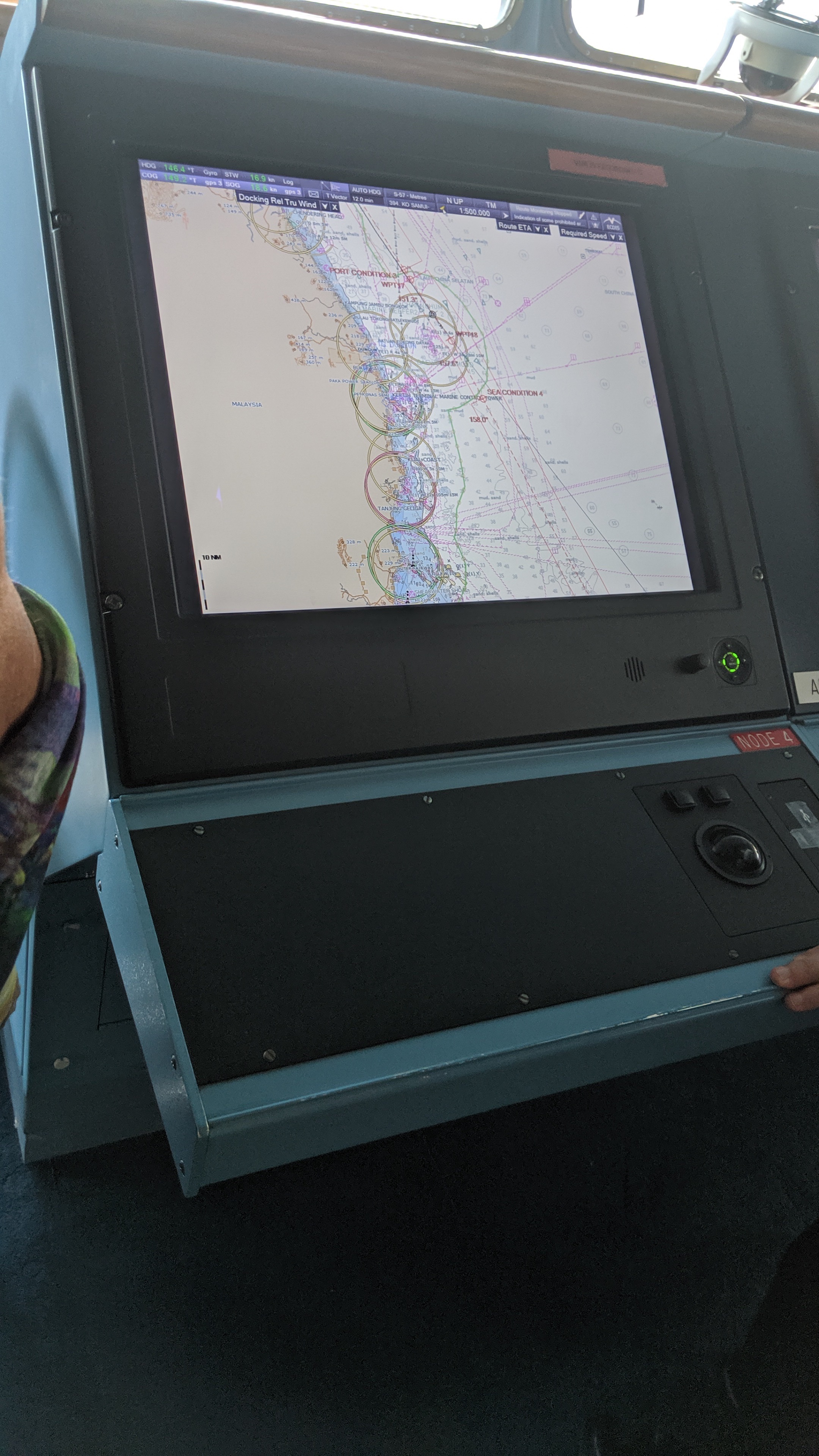 Tuesday, a day at sea. Bridge tour, quite extensive. Got to understand a bit about how navigation systems work and rules of the road and communication.