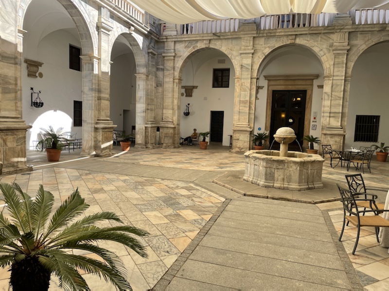 Wandered into Zafra the wrong way on the Autovia, through the industrial area and then the city. We wanted to stay at the Parador but unfortunately the city is sold out due to an agricultural fair, or the bank holiday, or something that we don’t understand.