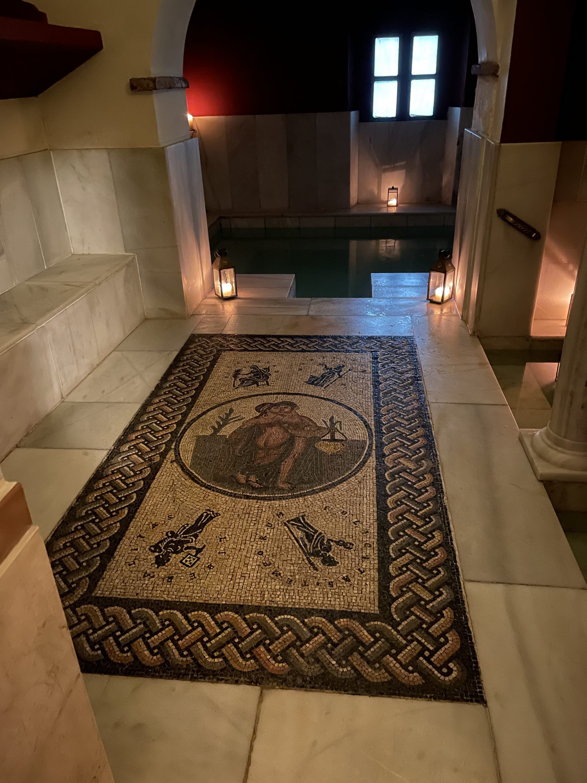 We opted for a romantic roman style hot tub (what they call hot here I call tepid) after a long but relatively easy walk. They have attempted to re-create a roman spa. I think there is even a show this evening but well past pilgrims bedtimes.