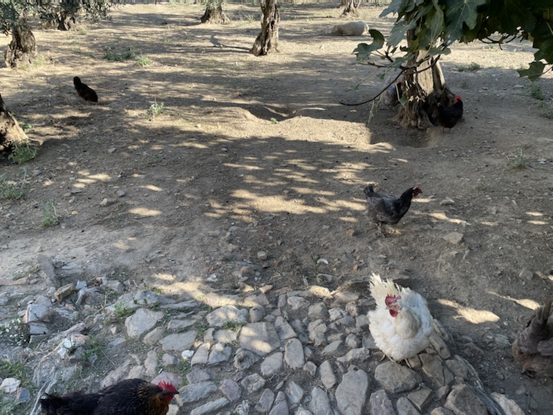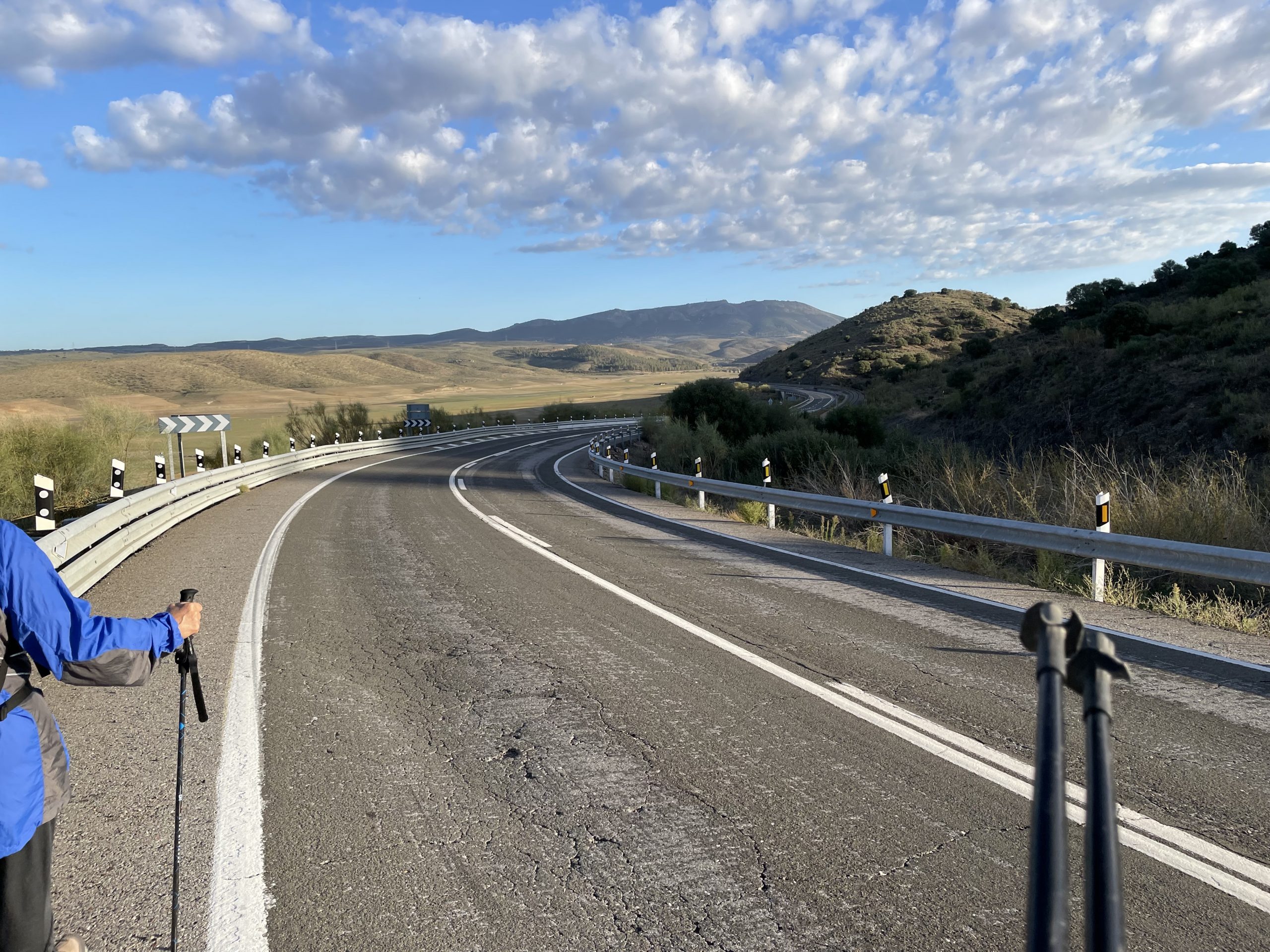 Rolling hills, scenery very different today. Basically foothills, green, very rocky. Path was mostly on the road and when it veered off it looked too treacherous so we kept to the safer bits.