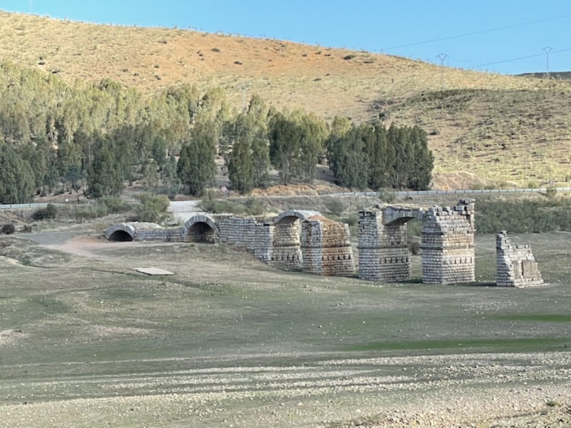Yes, some water but clearly most of it gone. Green grass growing on the surface and indications of roman overpasses.