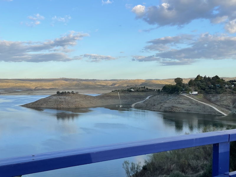 “La Almendra is one of the largest reservoirs in the country (86.5 kms. when full) and has the highest dam (202 meters). It dams up the Tormes River before it flows into the Duero. When we were there in March 2017 the water level was critical due to the dry winter. At the time of this writing, September 14 2017 it must be almost dry.”