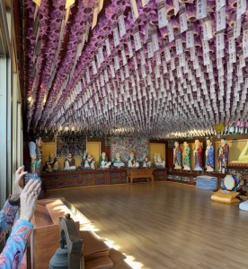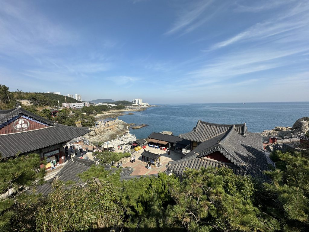 Very likely the best temple we have seen. Far too many pictures of a spectacular location overlooking the sea with very colorful Korean glue paintings where the glue is designed to repel insects.