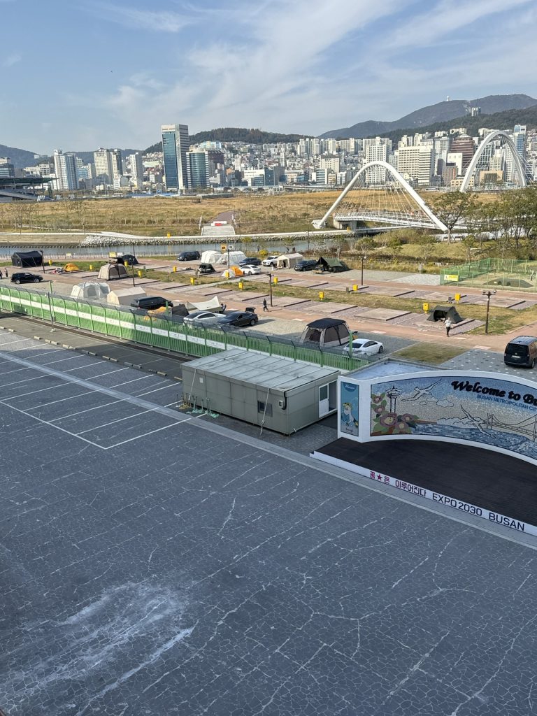Not at all clear to me why there is camping here, especially long-term camping. Maybe it’s the river access. May be a development site for Expo 2030.