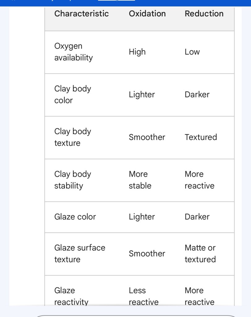 The firing process here uses reduction rather than oxidation. The gas fire kilns ate reduction.