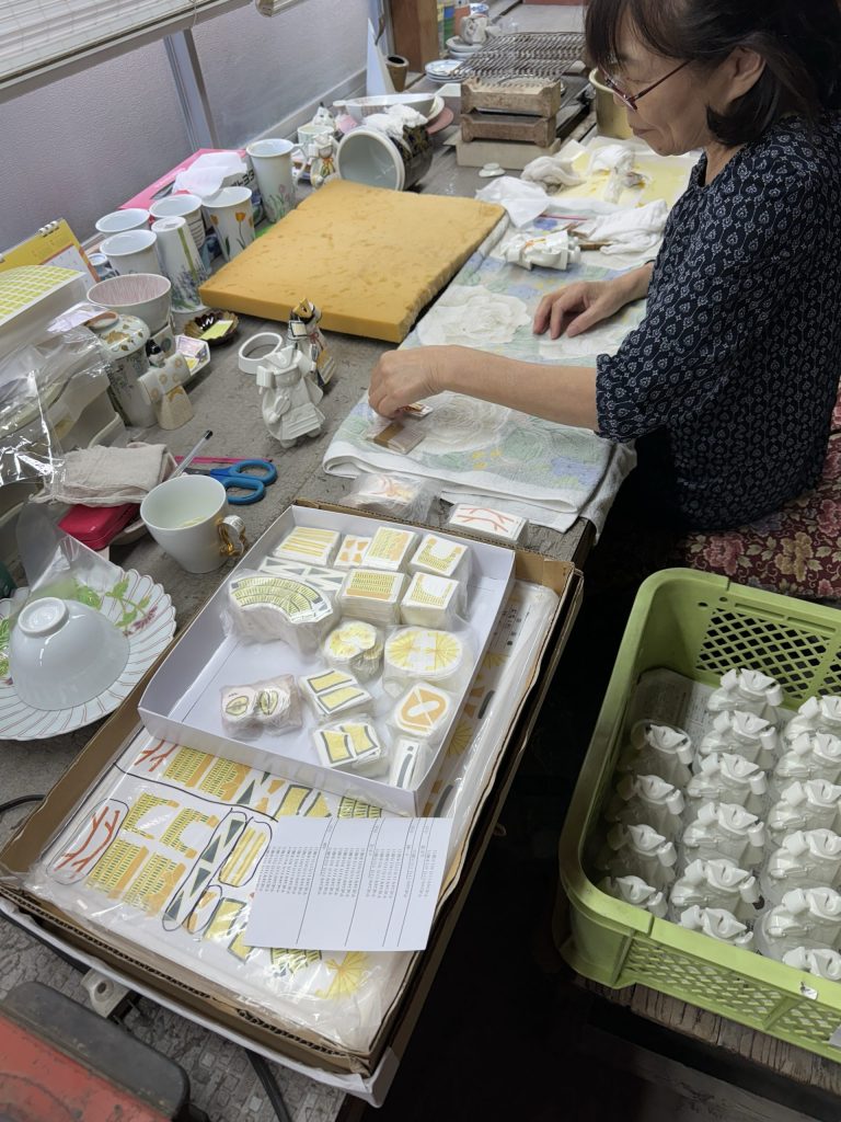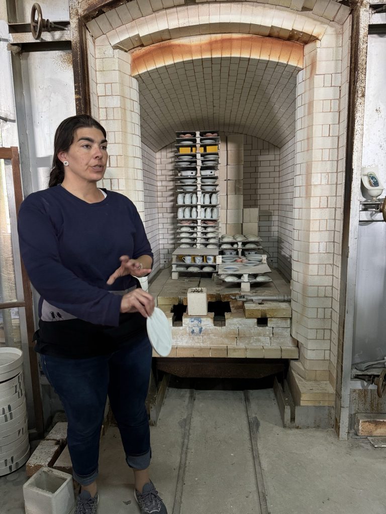 Factory and kiln tour after museum. A rather thorough tour of the factory from beginning to end, including details of how the stone is prepared and crushed plates, fired, glazed, decorated, the kiln, and then, of course, the most important part at the end of the tour the shop.