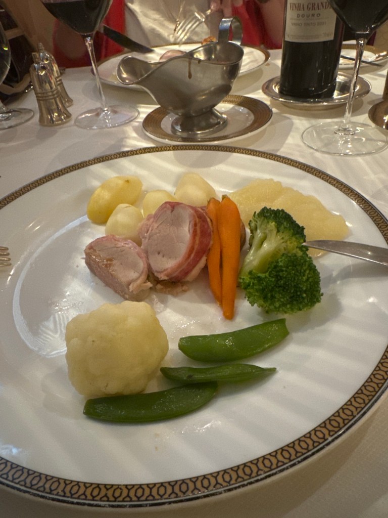 Based on the food pic, the service may be French but the chef is very old school British; plain pork roast with plain boiled veg. They seem to think that salt-free is the same as flavor-free.