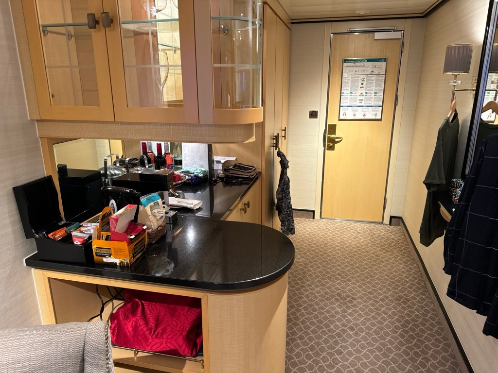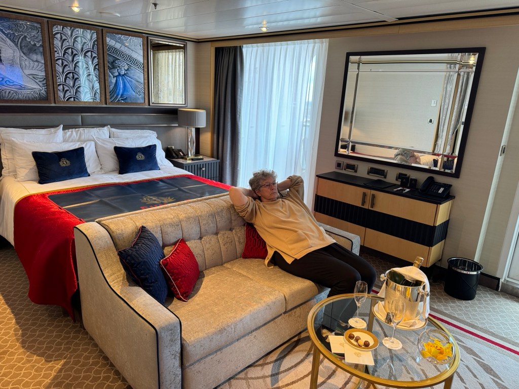 Very easy check-in, fabulous room (shout out to Kathy). Nothing like a Regant Cruise in that this place seems to nickel and dime everything. Even use of the spa you had to buy day passes or trip passes as well as Internet. coffee in some places, not even a glass of wine at dinner. I’m not sure what else yet. However, none of this comes as a surprise as the fabulous Kathy explained this in advance. Just not my view of good marketing.