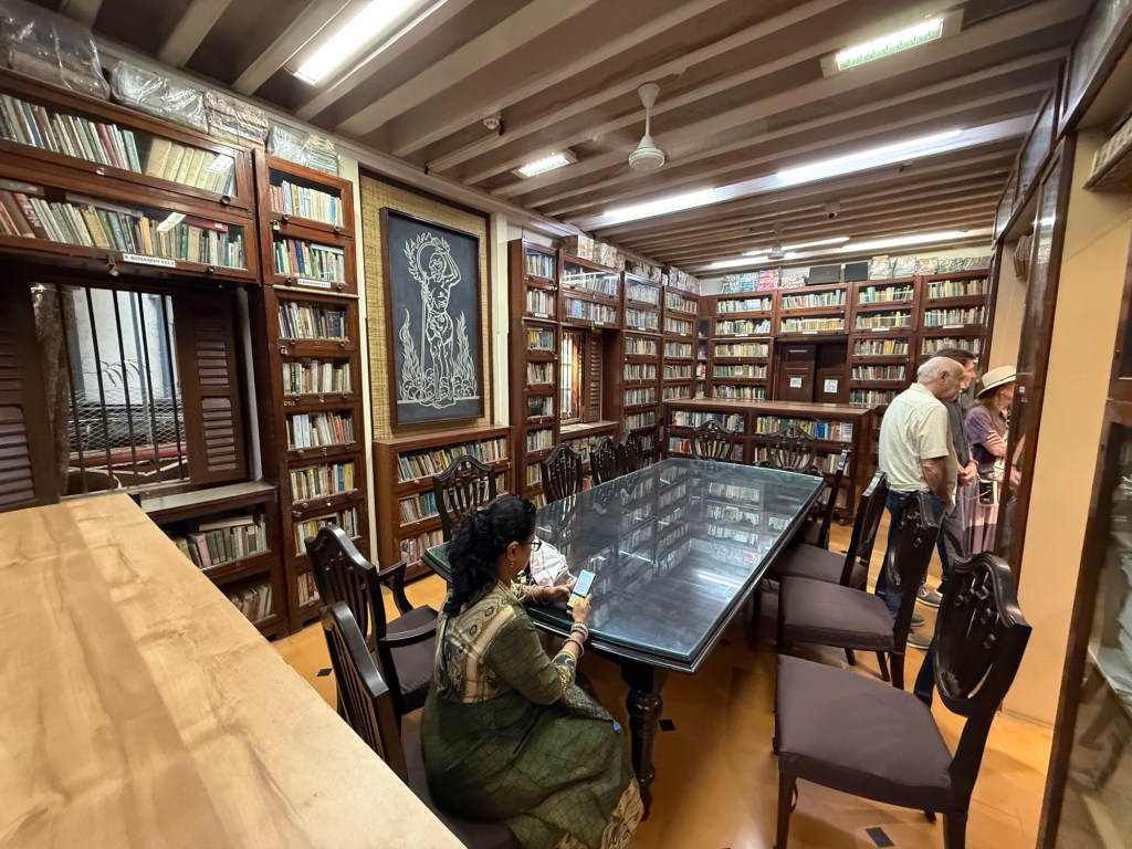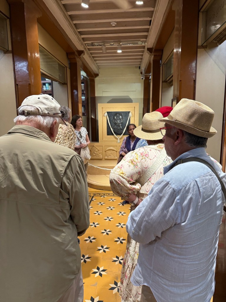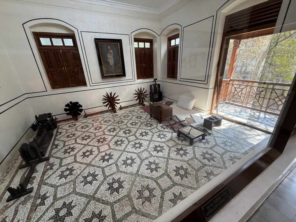 Next to the Ghandi museum. Advised to bring your own toilet paper. I spent much of the time in the library as well as the room that he spent most of his many many years here. One small room that has a lovely view from the balcony