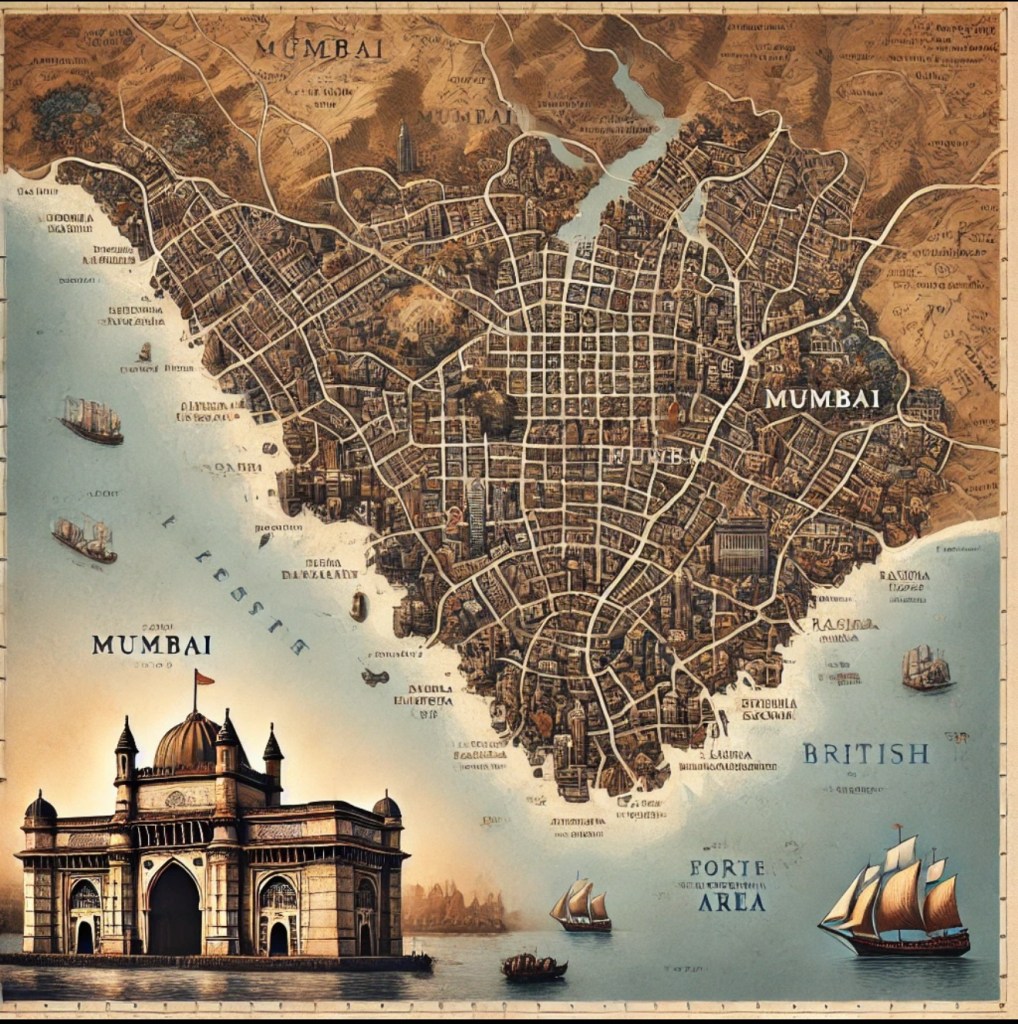 Here is a map of modern Mumbai with an overlay of the 19th-century British Fort area, showing how the city’s geography has changed over time.