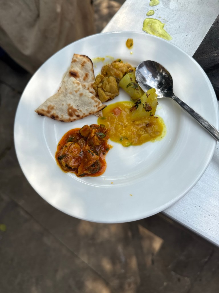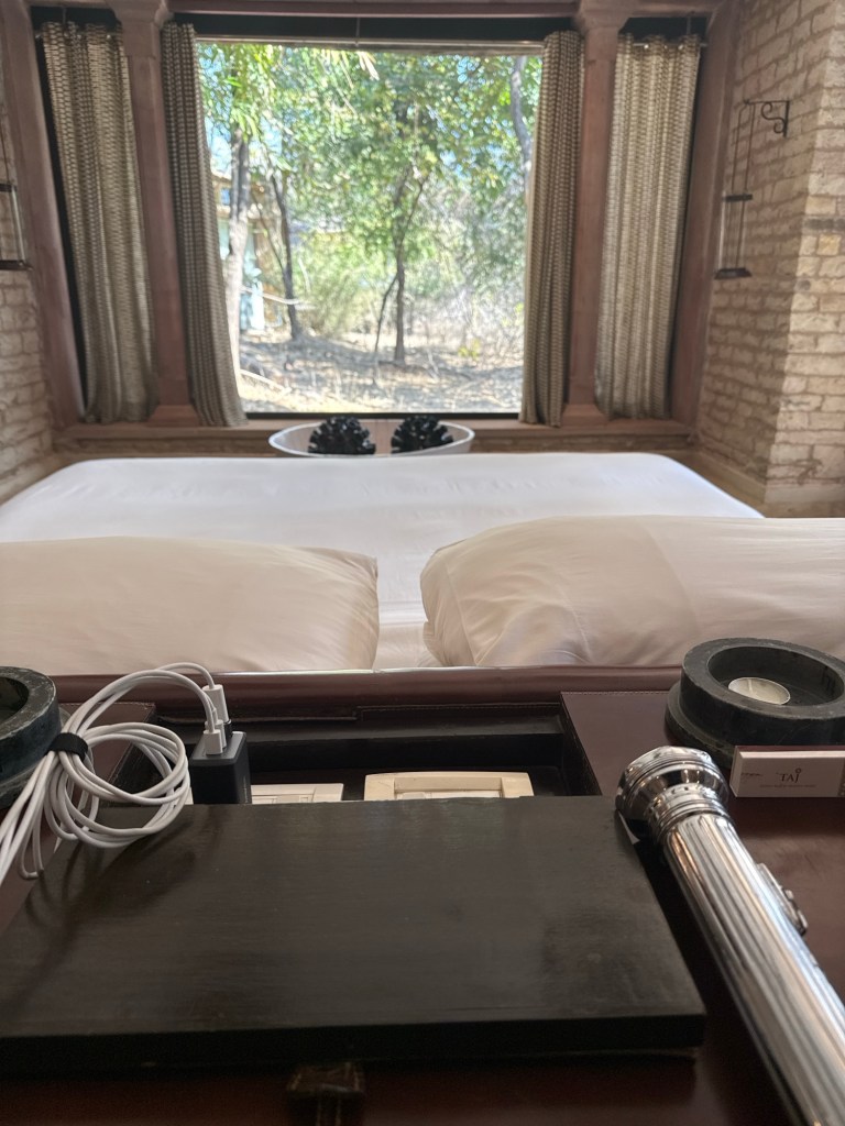 We saw the tigers at about 8 AM after getting up at 5 AM. It was a long trip there on extremely sandy and bumpy roads through the forest. We stayed there for a while, had lunch at the roadside, and then took the bus back. It was very inefficient for a way to travel.