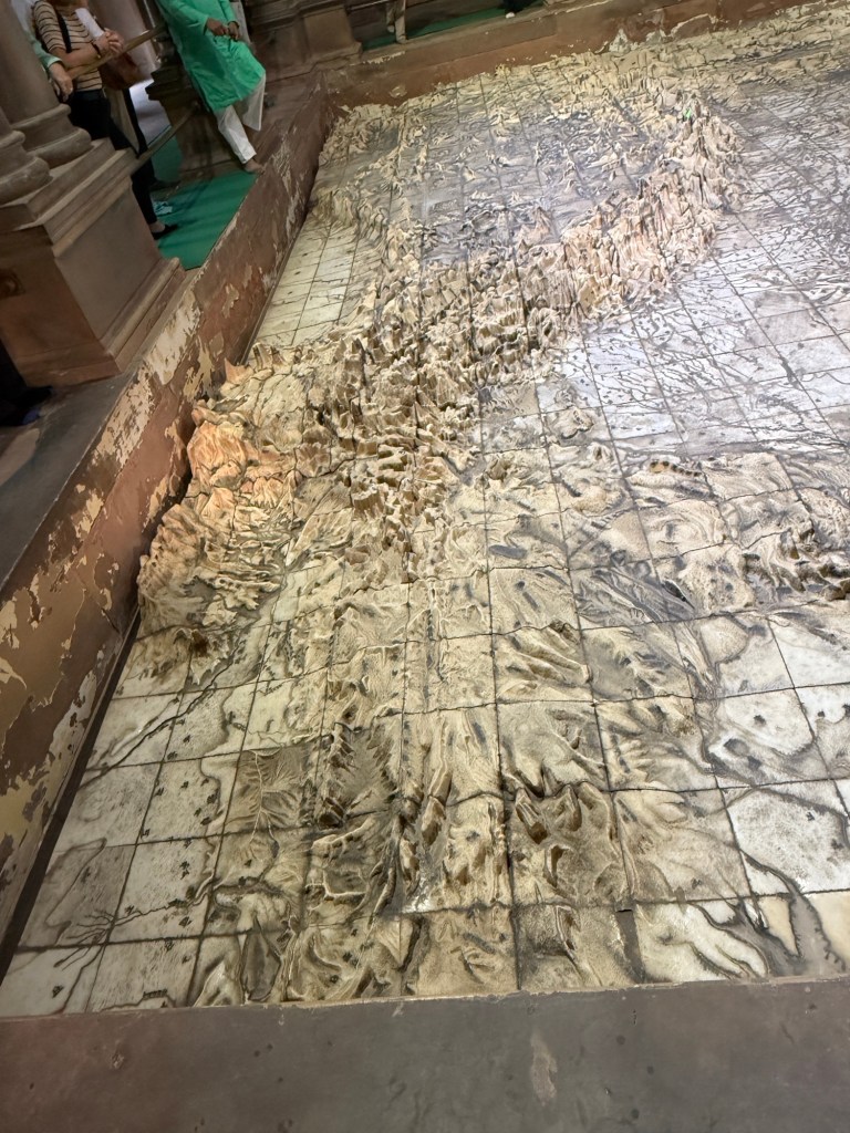 The Wikipedia article about Varansi history is indeed well worth the read; helpful to realize that it was previously named Benares, which was much more familiar to me. Also interesting to see the connection to Annie Besant, a fascinating figure. Amazed by the 3-dimensional map of India and the Himalayas, especially given it was carved into the ground! Hope a good night’s sleep will cure the impact of all those bells ringing…
