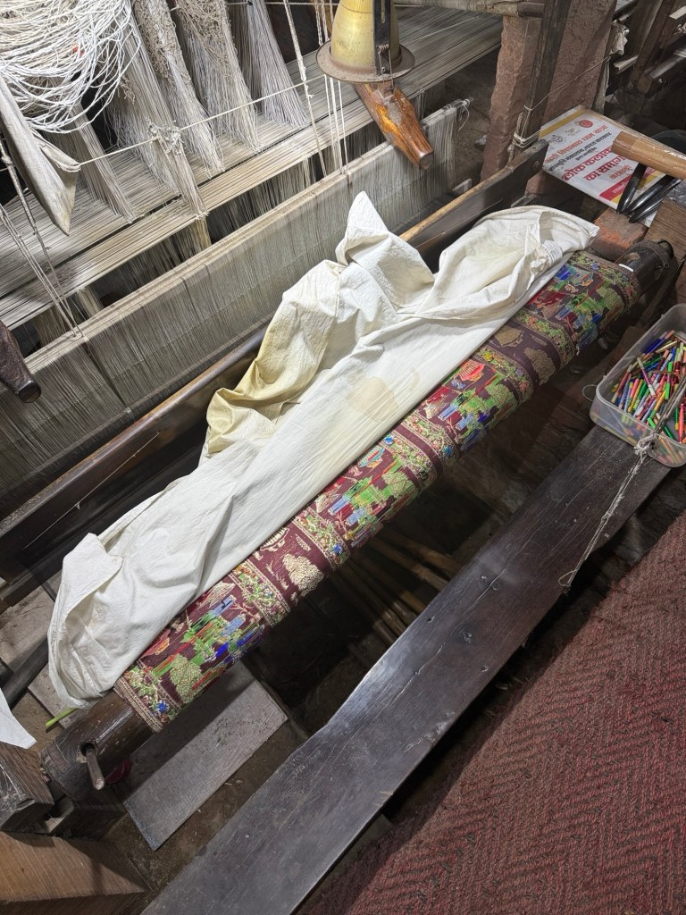 Once the raw silk is sourced, weaving families in Varanasi—especially in areas like Madanpura, Alaipura, and Lallapura—dye, weave, and embellish the silk with intricate zari (gold or silver thread) work.