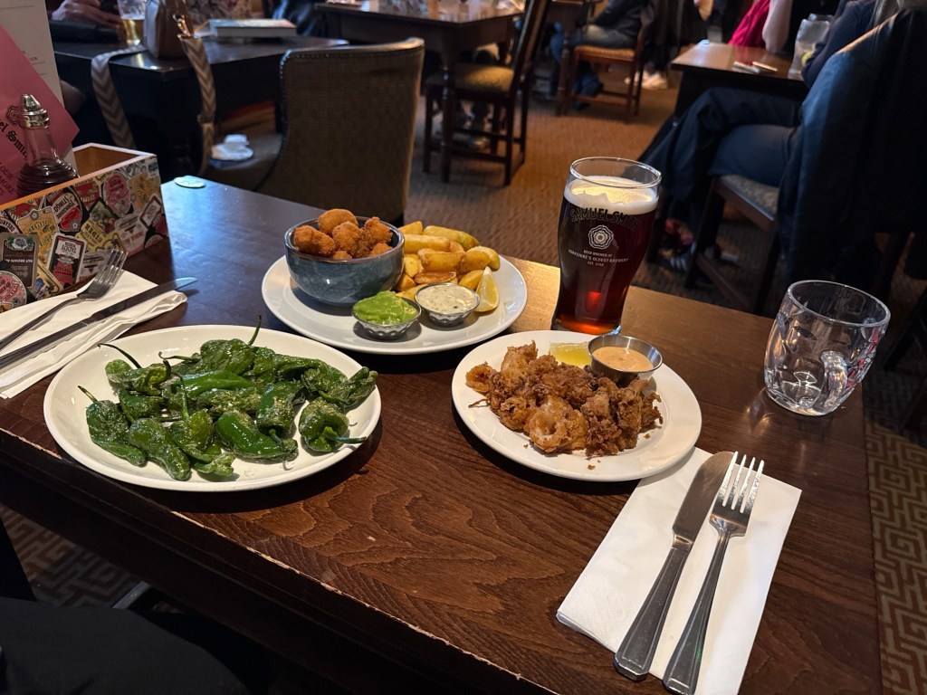 greatly out of practice with pub food. Did not realize everything would be breaded. Duh. Samuel Smith, bitter pretty good. that said we could not finish a pint between us. Pathetic.