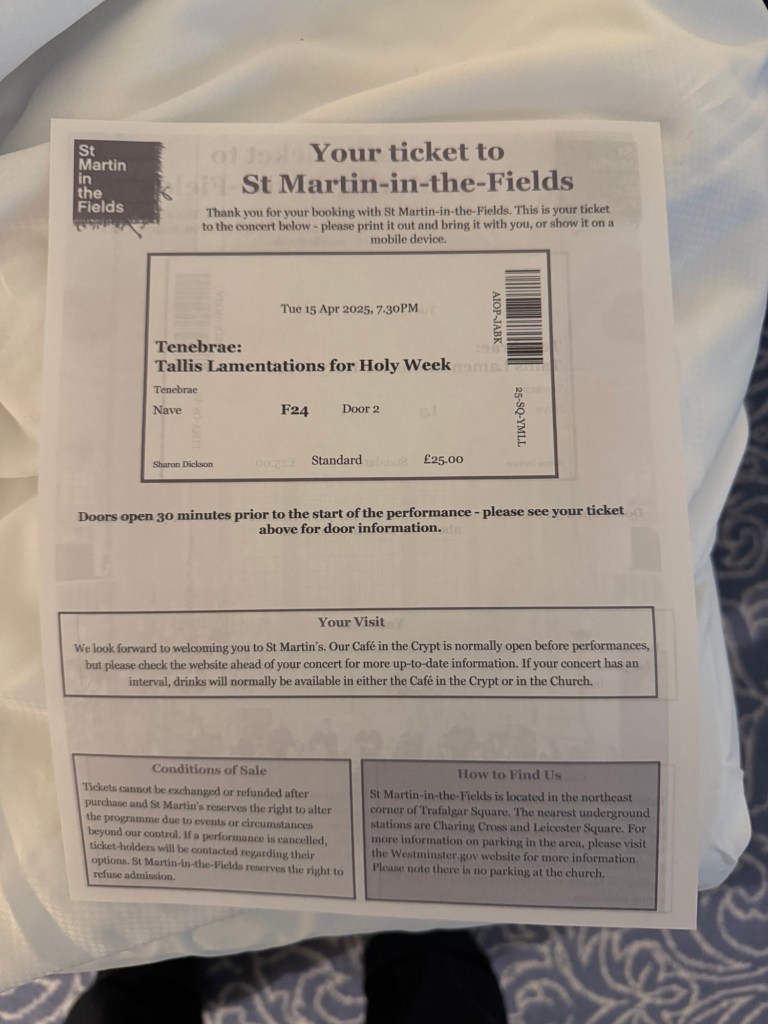 Ah—realized I made an error—I saw “Tallis” and thought only of the Tallis Scholars at that moment, since I would be seeing them. I’m certainly familiar with the composer and his works. If the group you saw was Tenebrae—and it seems from the ticket that it was?–I love them. Dee