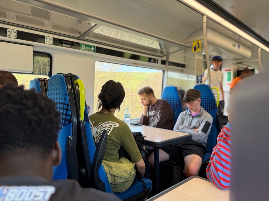 Train full with day hikers. Primarily school age as this is Easter school break.
