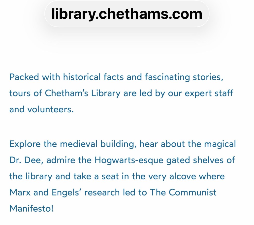 Arrived and surprised to find you can only see the library by a guided tour, for which you must book tickets in advance. Went online to find the tickets were all sold out, rather like the Cheese Shop.