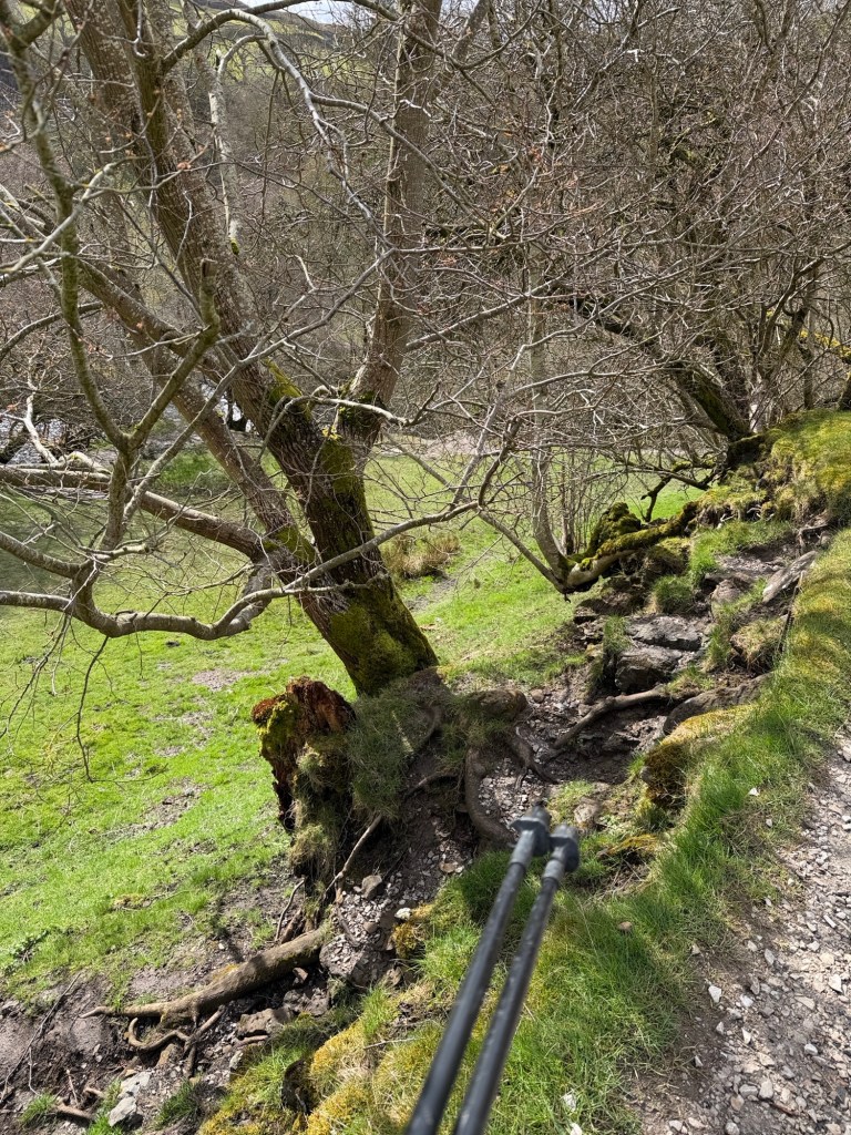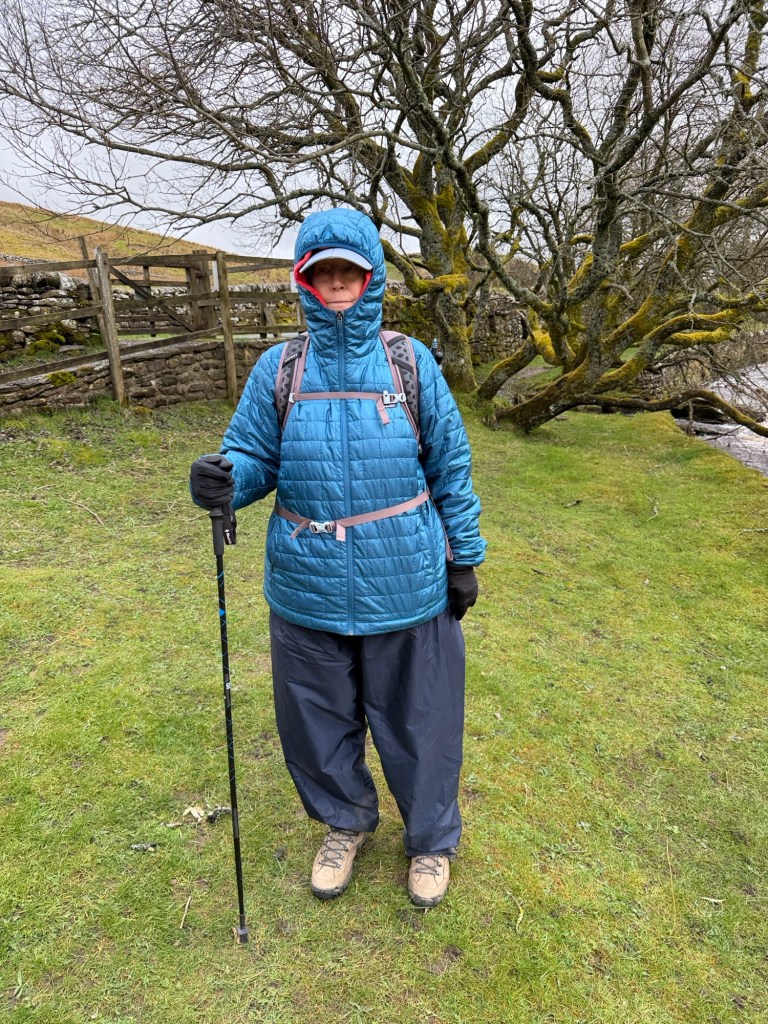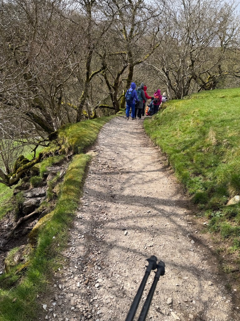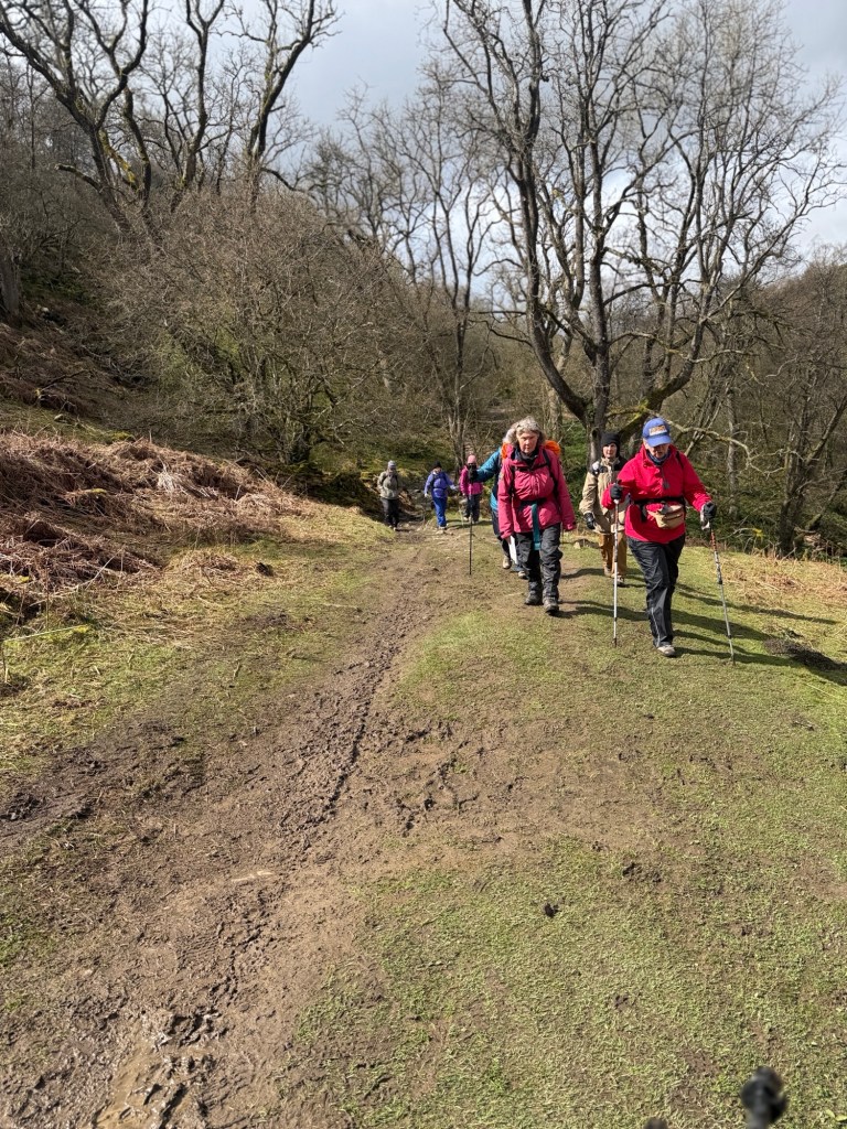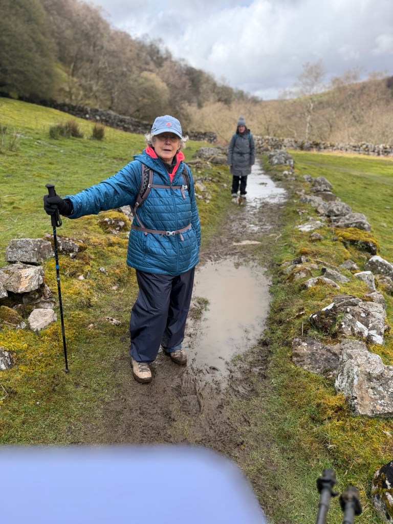 Very windy as we climbed 25 to 30% grades with Rocky ground. Two poles walking for me, one for Sharon. Hills are much higher in this section.