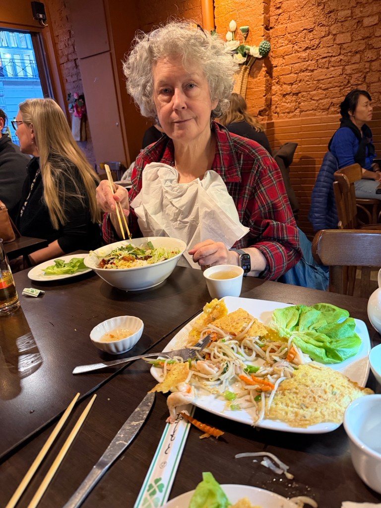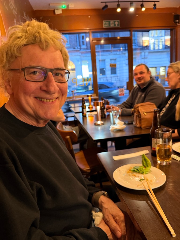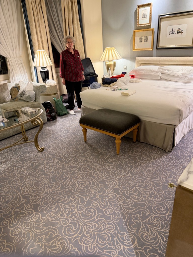 Sharon released from the hospital wheezing but able to travel so a taxi to Leeds and then a direct train to London.