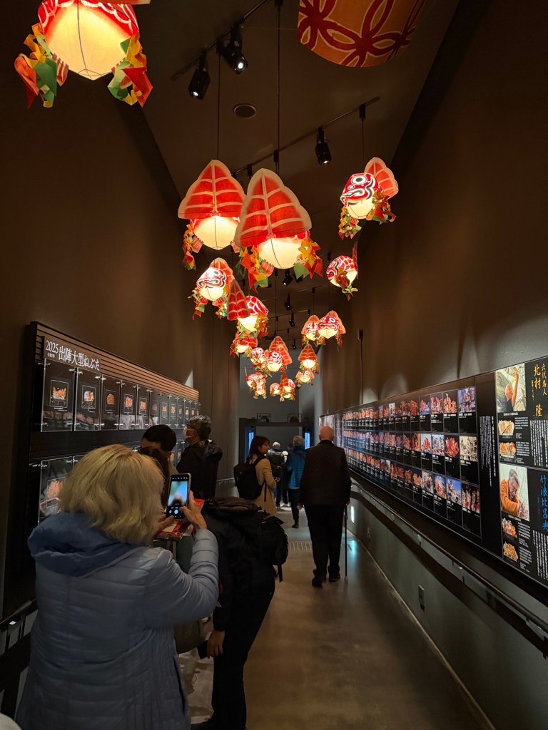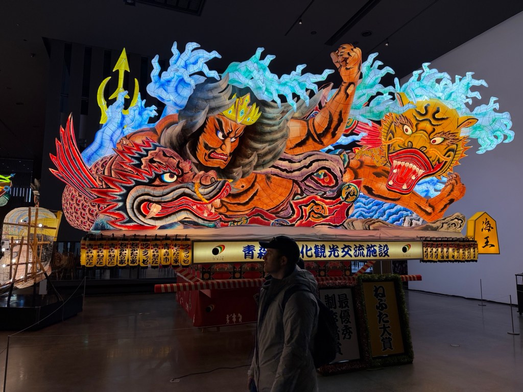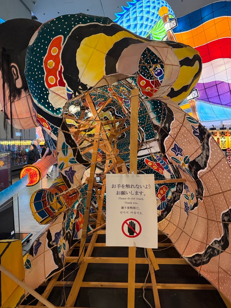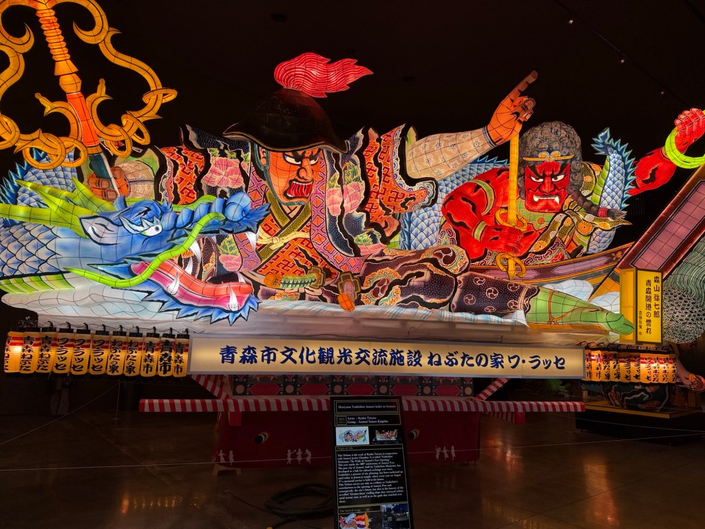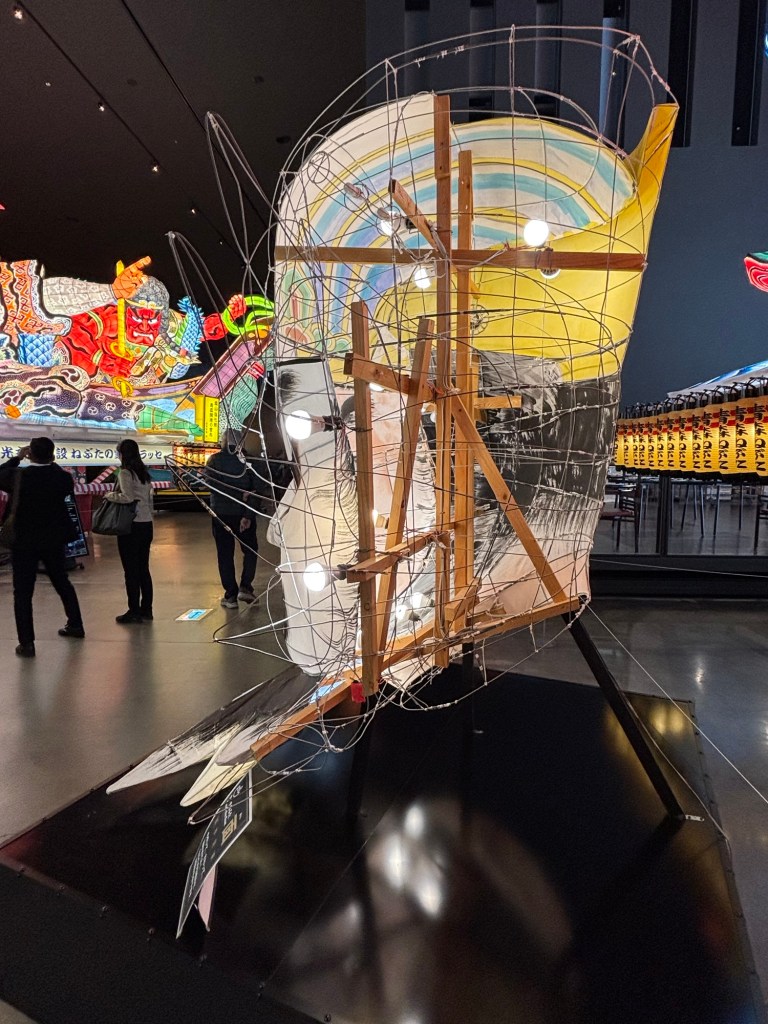 Lantern Museum contains floats from the Aomori Lantern Festival which occurs in August. Floats are constructed of Japanese paper squares, wood supports and are painted and lit.