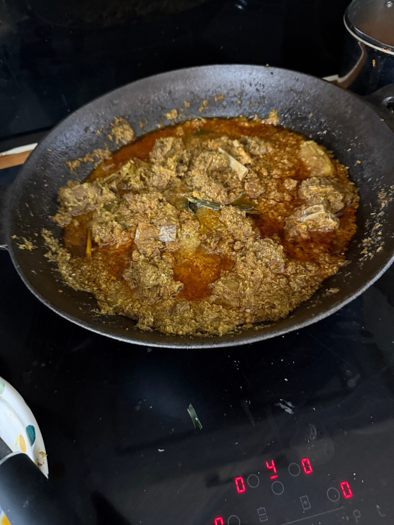 Dinner: Tom yum soup, Muru style, made for me. Noodles and pork curry. Hard to do the latter for a Hindu
